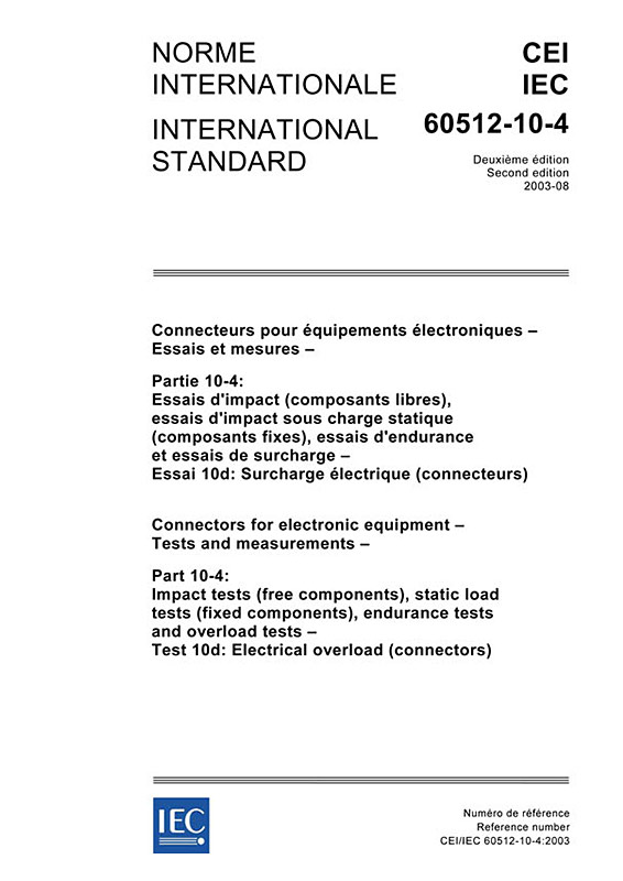 Connectors for electronic equipment - Tests and measurements - Part 10-4: Impact tests (free components), static load tests (fixed components), endurance tests and overload tests - Test 10d: Electrical overload (connectors)