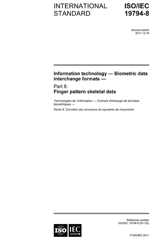 Information technology - Biometric data interchange formats - Part 8: Finger pattern skeletal data