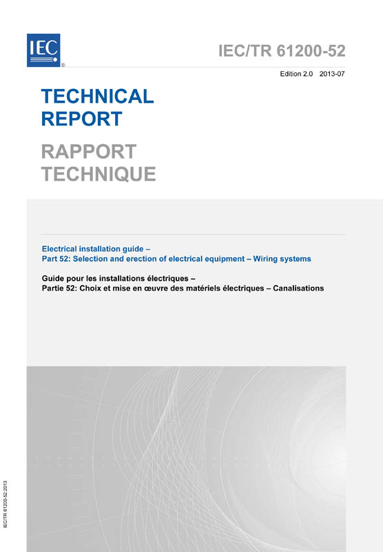 IEC/TR 61200-52:2013 is Technical Report which serves as a supplement to IEC 60364-5-52:2009 and explains the rules so as to facilitate the design, selection, erection and maintenance of wiring systems. It follows the numbering of that standard. This technical report is written for everyone concerned with the design, the selection and supply of equipment, as well as the persons who install, maintain and use electrical installations. This second edition cancels and replaces the first edition, published in 1993, and constitutes a technical revision. This edition includes the following significant technical changes with respect to the previous edition: