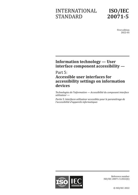 Information technology - User interface component accessibility - Part 5: Accessible user interfaces for accessibility settings on information devices