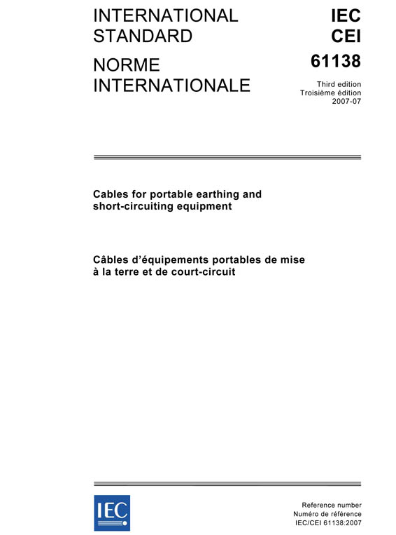 Applies to flexible cables with insulation based on ethylene propylene rubber (EPR), polyvinyl chloride (PVC) or silicone rubber (SiR) for portable earthing and short-circuiting equipment. For this type of cable no rated voltage is given as such cables are exclusively intended for earthing and short-circuiting equipment. The particular types of cable and their code designations are specified in Clause 6 of this standard. The test methods specified in this standard are given in IEC 60227-2, IEC 60245-2, IEC 60811 and IEC 62230. The significant technical changes with respect to the previous edition are as follows: - extension of the scope to cover silicone rubber as an insulation material; - introduction of a new normative annex for clashing test.