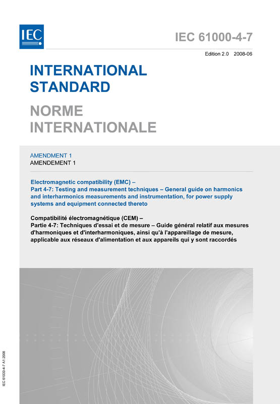 Amendment 1 - Electromagnetic compatibility (EMC) - Part 4-7: Testing and measurement techniques - General guide on harmonics and interharmonics measurements and instrumentation, for power supply systems and equipment connected thereto