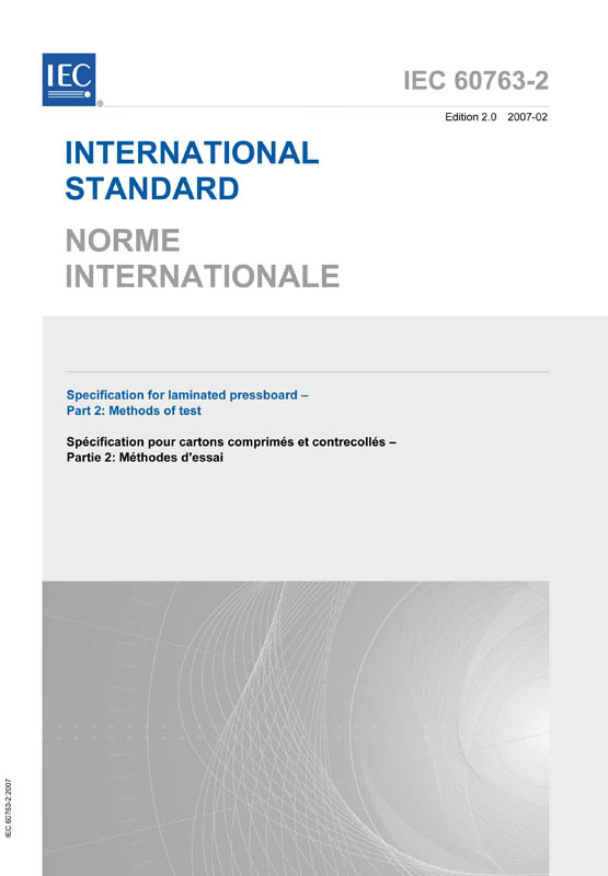 IEC 60763-2:2007 gives methods of test applicable for the material classified in IEC 60763-1. This edition includes the following significant technical changes with respect to the previous edition: