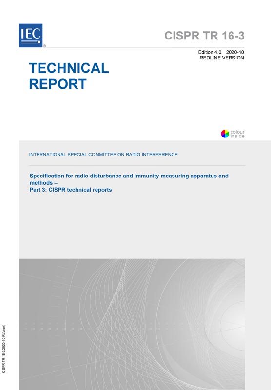 CISPR TR 16-3:2020 RLV contains both the official IEC International Standard and its Redline version. The Redline version is available in English only and provides you with a quick and easy way to compare all the changes between the official IEC Standard and its previous edition.