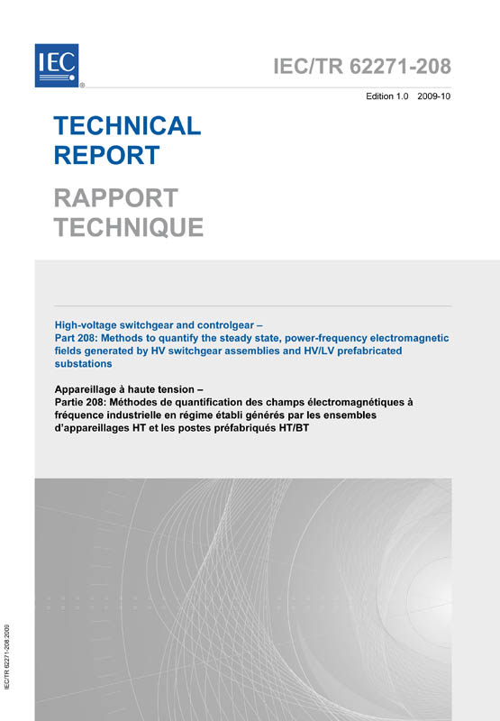 IEC 62271-208:2025 gives practical guidance for the evaluation and documentation of the external steady state power-frequency electromagnetic fields which are generated by HV switchgear and controlgear assemblies and prefabricated substations. Basic requirements to measure or calculate the electric and magnetic fields are summarised for assemblies covered by IEC 62271-200 and IEC 62271-201, and for prefabricated substations covered by IEC 62271-202.