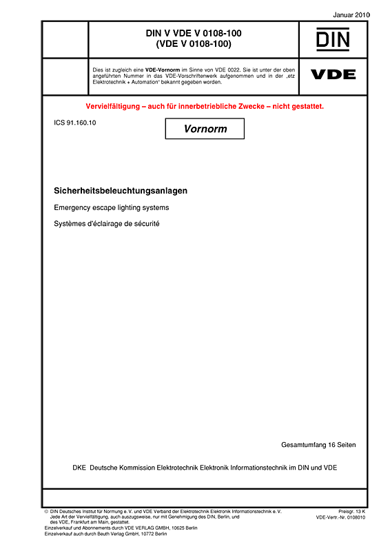 DIN V VDE V 0108-100 VDE V 0108-100:2010-01