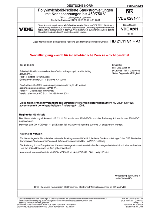DIN VDE 0281-11 VDE 0281-11:2003-02