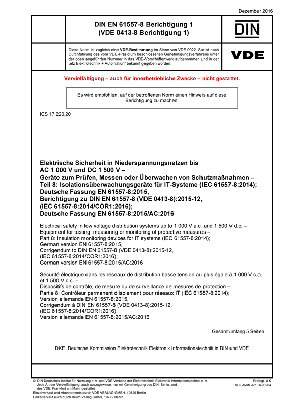 DIN EN 61557-8 VDE 0413-8 Berichtigung 1:2016-12