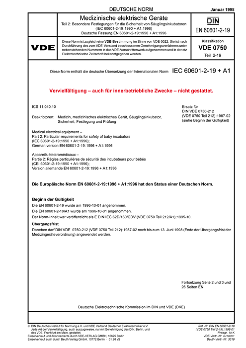 DIN EN 60601-2-19 VDE 0750-2-19:1998-01