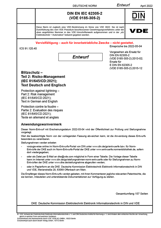 E DIN EN IEC 62305-2 VDE 0185-305-2:2022-04