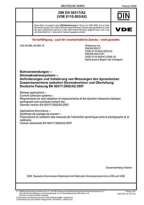 DIN EN 50317/A2 VDE 0115-503/A2:2008-02