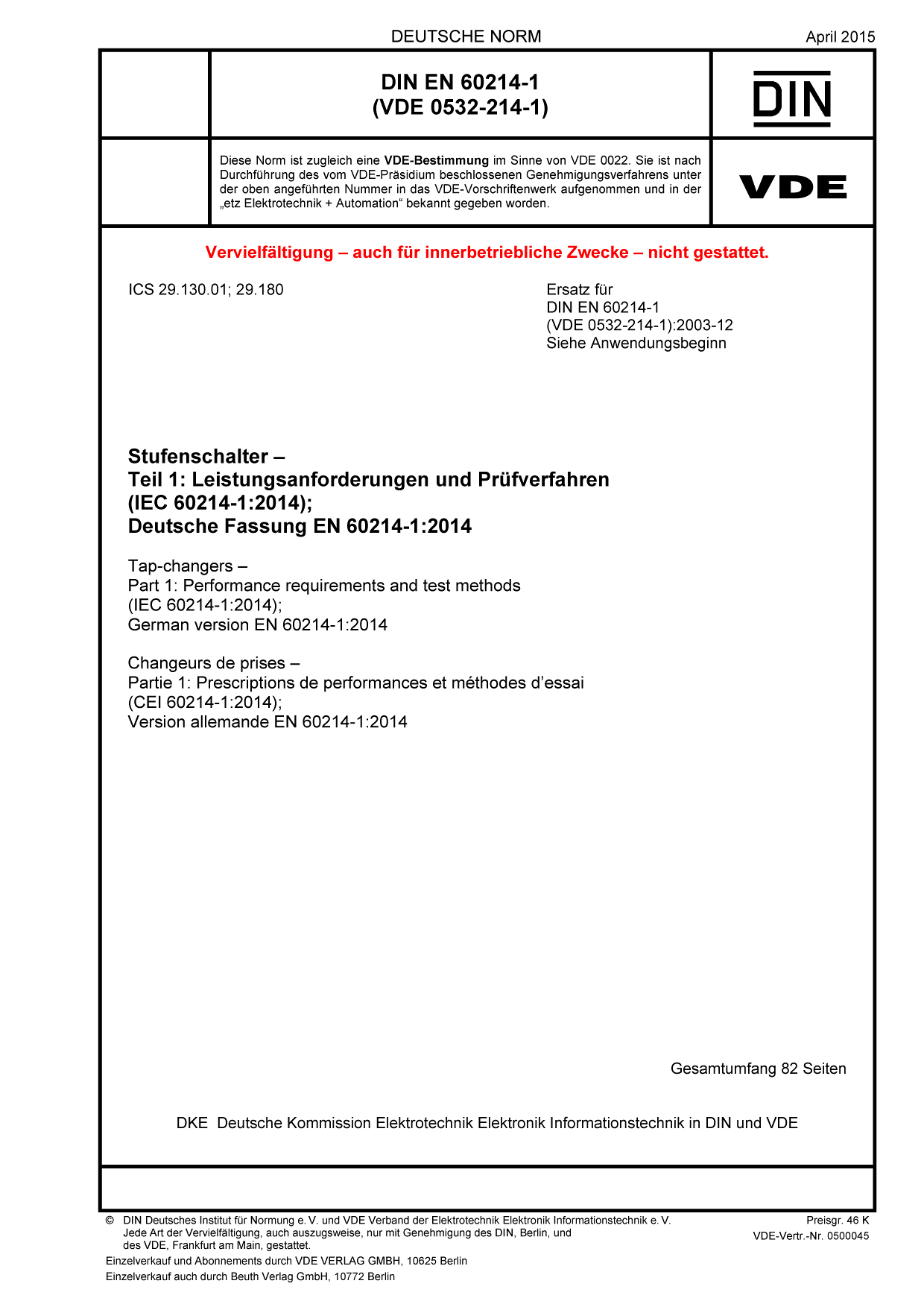 DIN EN 60214-1 VDE 0532-214-1:2015-04