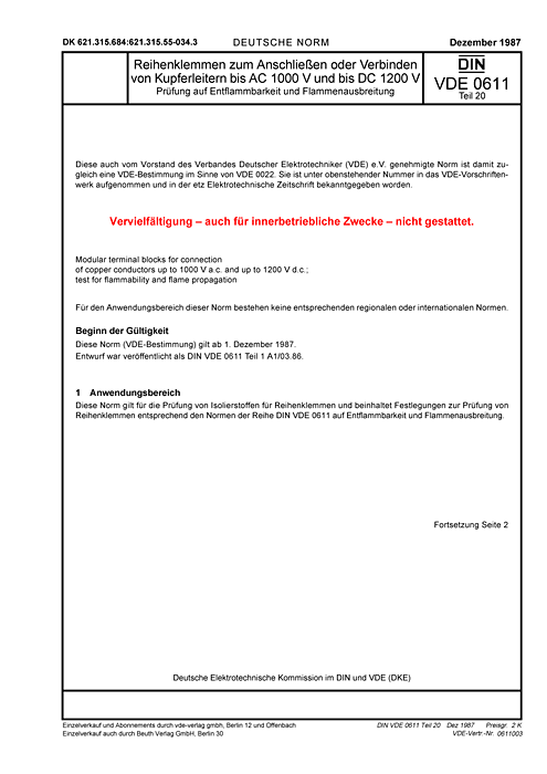DIN VDE 0611-20 VDE 0611-20:1987-12