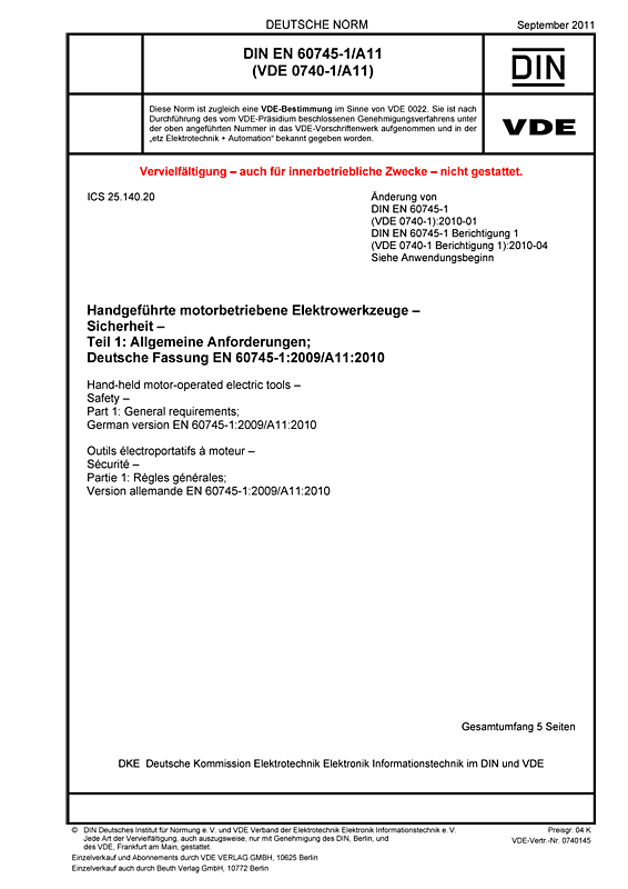 DIN EN 60745-1/A11 VDE 0740-1/A11:2011-09