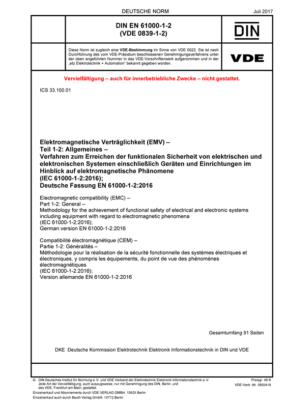 (IEC 61000-1-2:2016); German version EN 61000-1-2:2016 Class/Status: