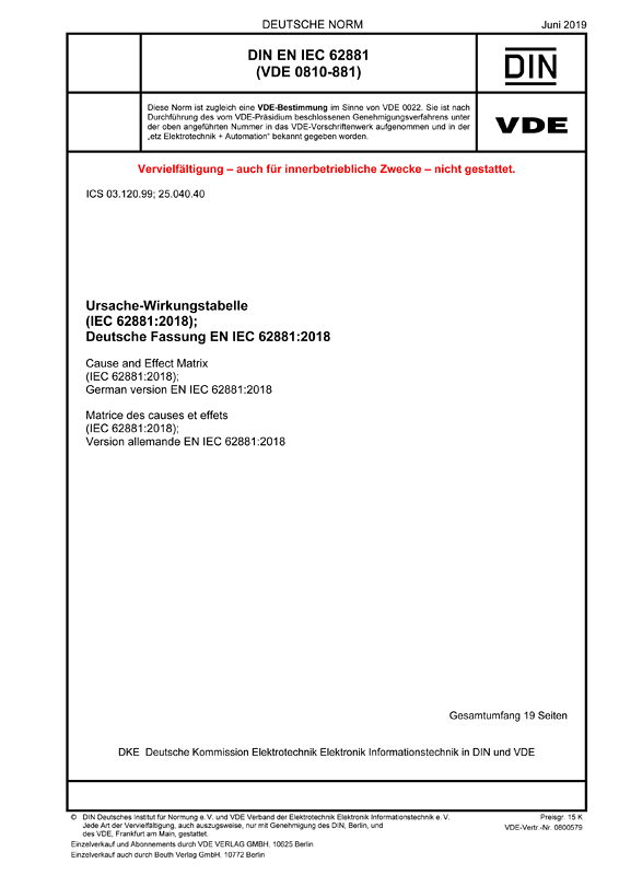 This standard addresses minimum requirements for the content of Cause and Effect Table (C&E) based on existing design documents, e.g. P&ID. The standard defines the requirements of how to use C&E Table in a consistent way for further engineering activities within Instrumentation & Control (I&C).
