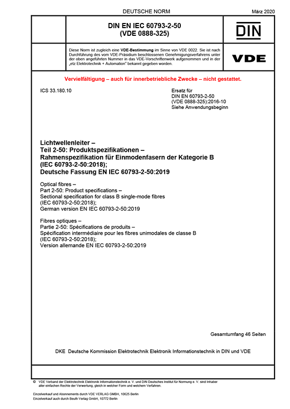 DIN EN IEC 60793-2-50 VDE 0888-325:2020-03