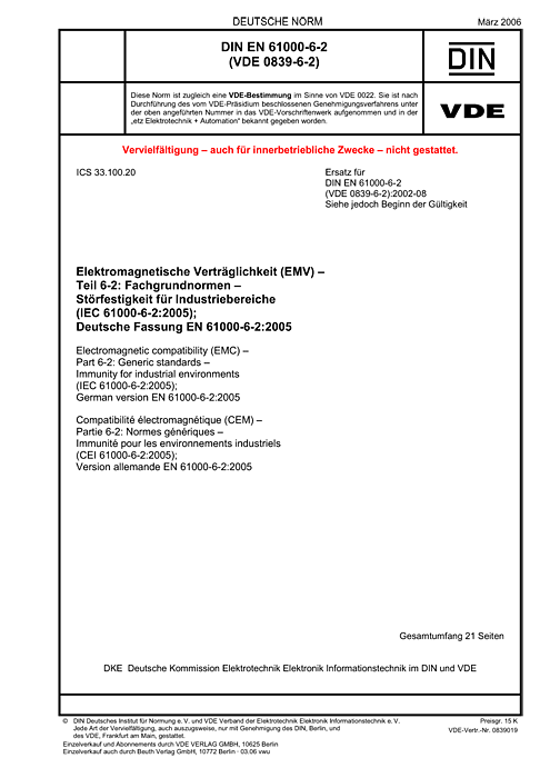 DIN EN 61000-6-2 VDE 0839-6-2:2006-03