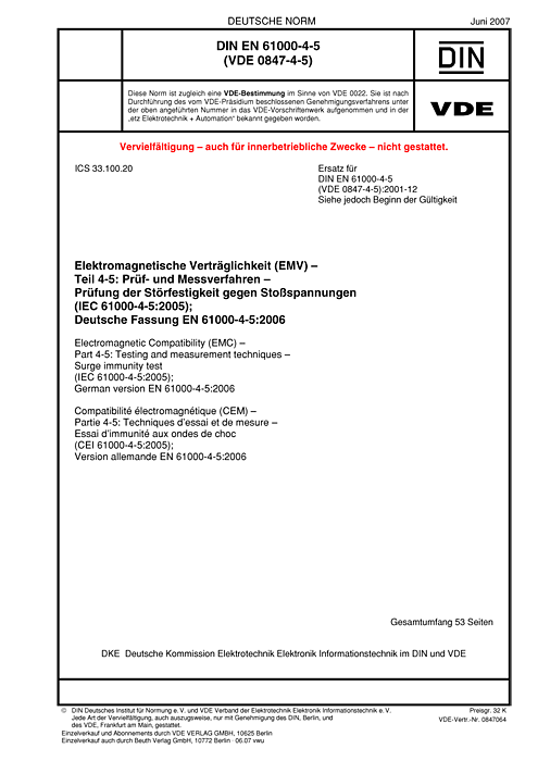 DIN EN 61000-4-5 VDE 0847-4-5:2007-06