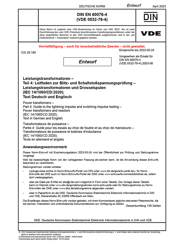This part of IEC 60076 gives guidance and explanatory comments on the existing procedures for lightning and switching impulse testing of power transformers to supplement the requirements of IEC 60076-3. It is also generally applicable to the testing of reactors (see IEC 60076-6), modifications to power transformer procedures being indicated where required.